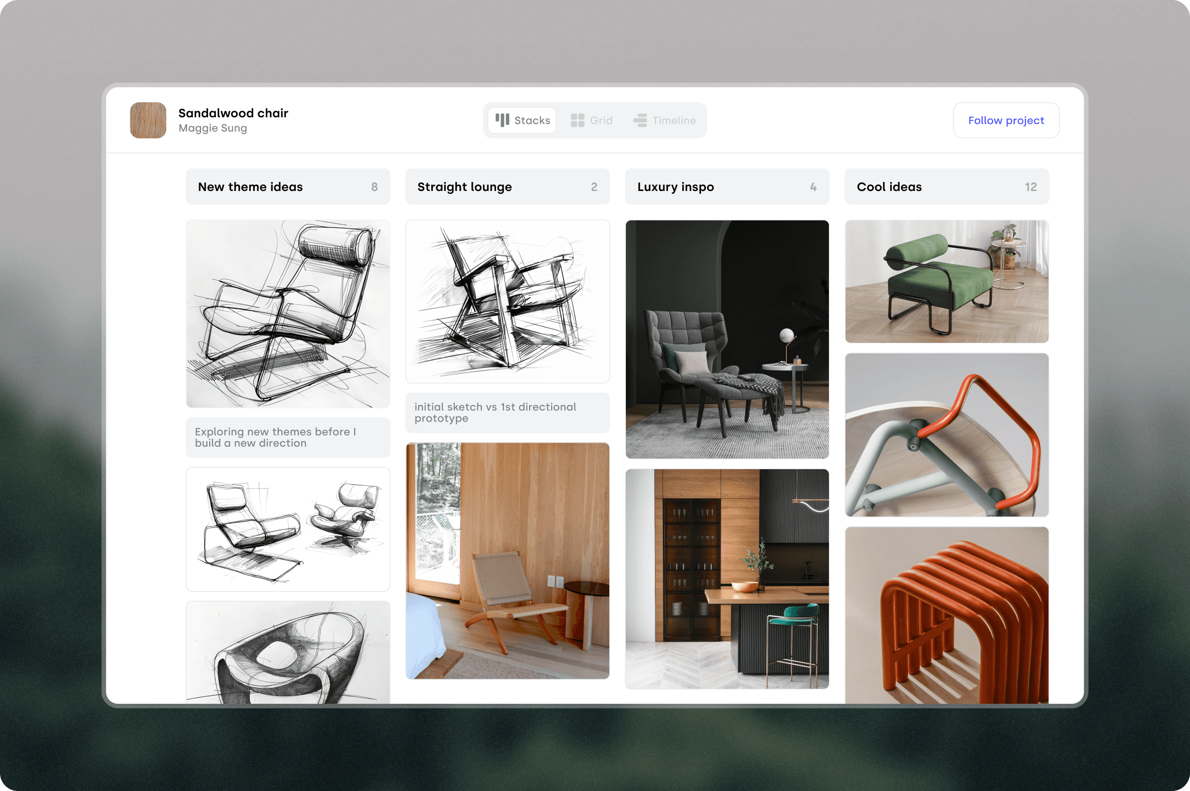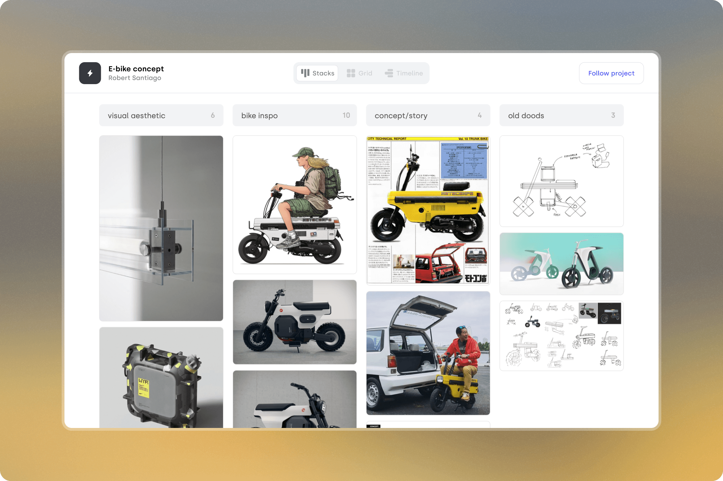 Organize everything (sketches, screenshots, inspiration, build photos, etc.) in one place.